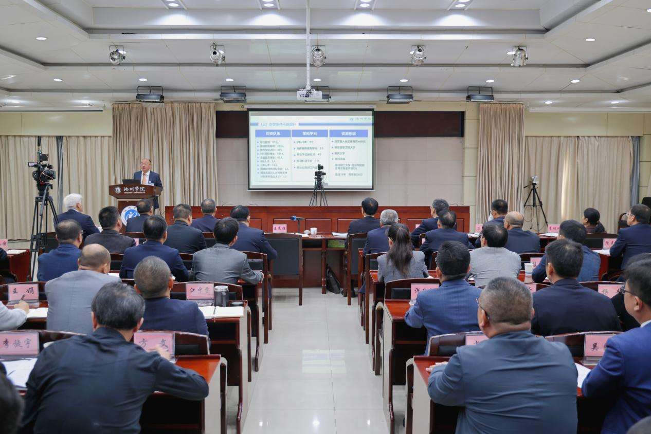 10月13日,学校在办公南二楼会议室召开本科教育教学审核评估线上评估启动会。审核评估专家组组长、南通大学原党委书记浦玉忠,专家组副组长、合肥师范学院党委书记徐成钢及全体专家组成员,安徽省教育厅总督学邵曙光,省教育厅高教处处长蒋正飞,二级主任科员徐菲线上参会。校党委书记王峰,党委副书记、院长王先柱及全体校领导出席会议。会议由王先柱、浦玉忠分阶段主持,采用线上线下相结合方式举行。